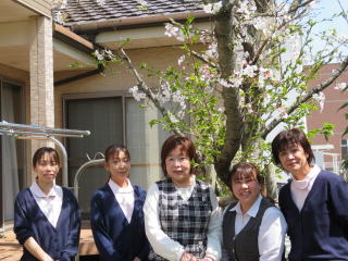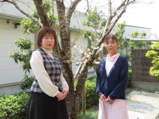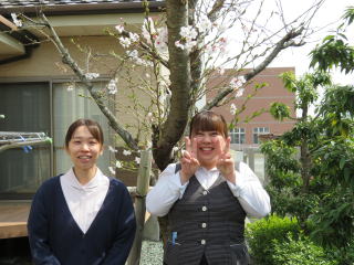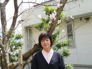 桜の木の前で