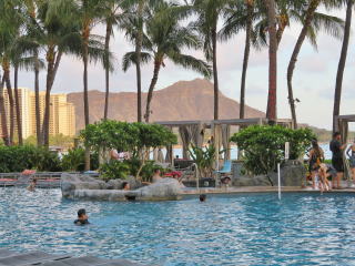 | C. ハワイ・ワイキキにある有名なホテルのプール | D. プールの近くにある掲示板 |