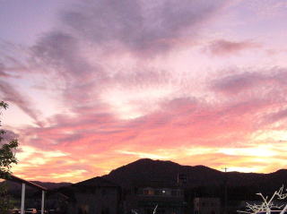 7月の終わり頃だったと思いますが、このホームページの1ページ目に、“ここ何日かは真夏らしい入道雲を見てない気がします”と書いたのを覚えています。8月に入ってからも、すかっとした青空と白い大きな入道雲が見える景色があまりありませんでした。先週は、すじ雲やうろこ雲が出ていました。早い秋を感じさせましたが、何か物足りない気がしていました。それが、8月の終わりになって、昨日、今日、きれいな入道雲を見つけました。昼ごろは西の高山の上に真っ白な色で、夕方は東の神南山の上に赤い夕日を浴びて、むくむくと立ちのぼっていました。「こうでなくっちゃ」と満足しました。