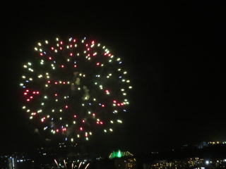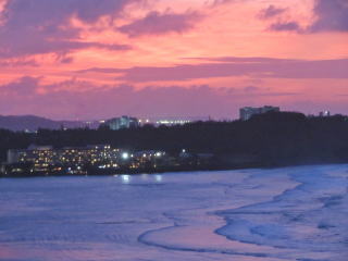 | 大晦日のグァムの夕暮れ | カウントダウンのあと、タモンビーチに打ち上げ られた花火 |