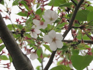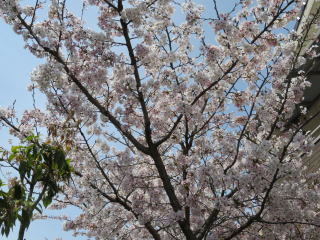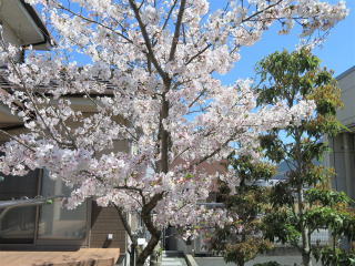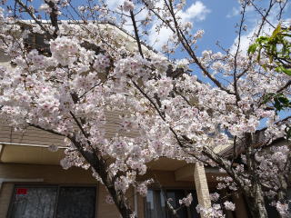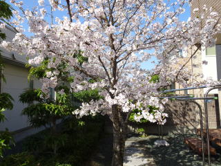 家の桜は植えてから10年が過ぎ、風格が出てきました。幹や枝がだいぶ太くなり、たくさんの花を付けるようになりました。3月19日に1輪咲きました。今年は開花の進行がゆっくりでした。5輪咲いたのが3月24日で、満開は4月4日から6日頃でした。そのあと、雨が降るたびに花が散っていきましたが、開花から1か月後の4月19日になってもまだ花が残っていました。