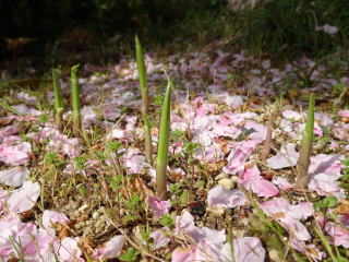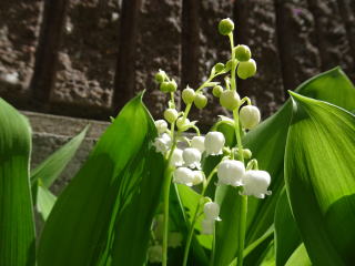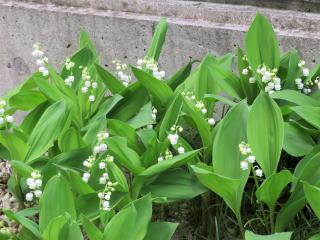 | 散った桜の上にスズランの芽(4月2日) | 10日頃から次々に花が咲いていきました(4月15日) |