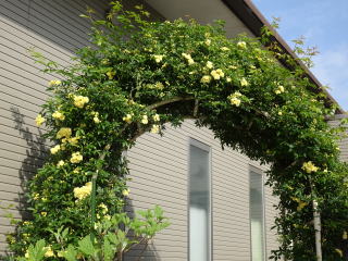 | モッコウバラは3月末に咲き始めました(4月2日) | 4月初めには花のアーチができました(4月7日) |