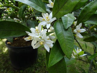 | みかんの木に蕾がたくさん付きました(4月18日) | みかんの花(4月27日) |