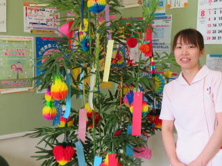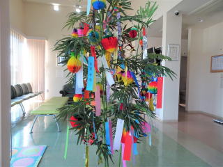 七夕の笹(ささ)を新調しました。前の笹と飾りが古くなったのと、見た目にしょぼかったので何年か前から気になっていました。コロナ禍で暗い世相の時こそ、せめて院内くらいは明るくしたいと思います。