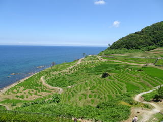 日本海に面して、小さい田んぼが段々になって海岸まで続いていました。天気も快晴、絶景でした。時は7月22日、東京オリンピックの開会式の前日でした。サッカーとソフトボールの予選が始まっていました。場所は能登半島の輪島からさらに奥に行った白米(しろよね)千枚田と呼ばれる所です。日本ならではの美しい風景です。