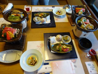 | 硫黄山 | ホテルの夕食(右横には和牛しゃぶしゃぶも) |