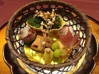 山形県羽州街道の楢(ナラ)下宿。江戸時代、江戸への交通路として繁栄し、参勤交代の大名行列が通った宿場です。当時の面影がしのばれる風流なお店で「こんにゃく懐石」をいただきました。味だけでなく、その「技」に驚きました。