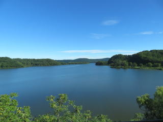 1週間以上全く雨が降らなかった大洲を発ち、北海道の女満別空港に着いたら雨でした。わりと本格的に降っていました。空港からバスでホテルに向いました。バス停からホテルの玄関まで走りましたが、けっこう濡れました。「何てこった」と思いましたが、いい温泉に浸かって、御馳走を食べると、上機嫌になります。ホテルは網走湖畔にあり、部屋からは写真のような景色が見えていました。この湖は冬には凍り、ワカサギ釣りが楽しめます。