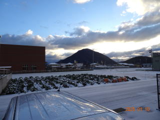 | 2025年1月8日 わが家の紅梅 | 1月10日朝8時 雪景色と神南山 |