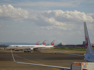 | きれいに並んだJAL機(羽田空港) | 雪のない黒い富士山 |
