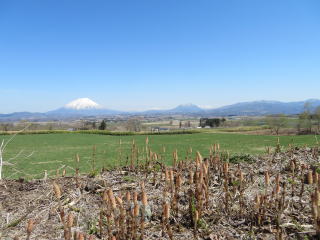 | 草原のつくしと羊蹄山(蝦夷富士)(北海道 2017) | 洞爺湖近くのたんぽぽ(北海道洞爺湖町 2017) |